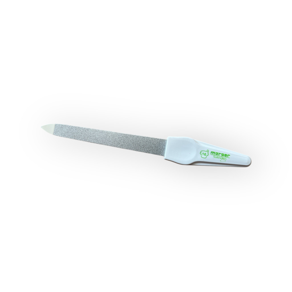 Zafírszemcsével beborított körömreszelő két oldalán különböző vastagságú szemcsékkel. Könnyű és praktikus ápolás a körmöknek.
